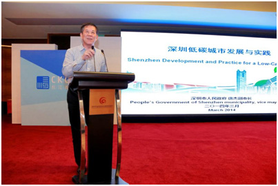 EMBA15期校友、深圳市副市长唐杰在发言中对深圳低碳城市的发展与实践作了介绍和说明。深圳的城市面积是2000平方公里,而每天的人口数超过1500万(包括短期流动人口)。在如此拥挤城市里还能保持一片蓝天白云,首先依赖的是城市规划。深圳在城市建设中保持了大片的绿地;其次,归功于特有的城市规划要点。深圳的所谓中心区面积很小,每个区域相对隔离、功能完备,依靠快速路连接;同时深圳所有建筑向东南15度倾斜,利用东南风使得城市通风走向非常好,热导效应比同样规模城市平均低两度。此外,深圳的公共交通目前已达到发达国家水平,公共交通承载率超过56%。