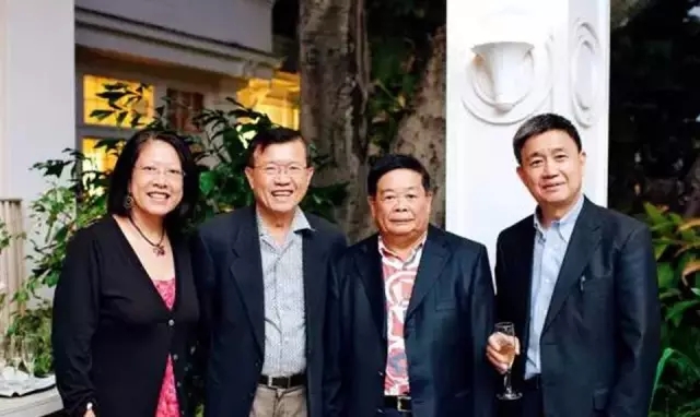 [2014年1月,在夏威夷州州长府邸,与曹德旺(右二)、东西方中心董事会荣休主席陈烈进(左二)合影]