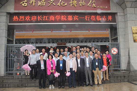 校友们在长江EMBA21期校友、古井集团董事长、党委书记梁金辉的陪同下,先后参观了古井酿酒车间、万吨酒库和古井酒文化博览园。
