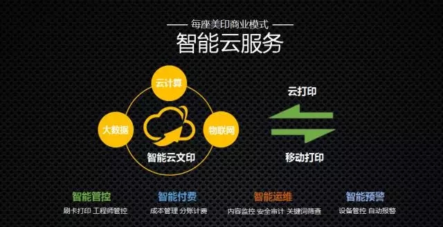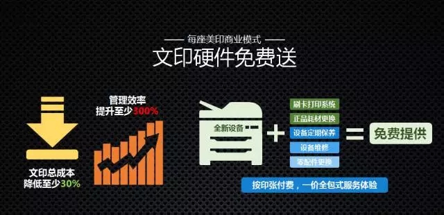 每座美印还提供针对中大型企业的云文印外包解决方案,建立进驻式文印中心,派驻专人负责管理企业的文印服务。通过智能云管理、智能云管控、智能云运维、智能云收费一体的全面智能文印外包解决方案,成为中国以绿色办公文印服务为核心业务的互联网+云平台领导品牌,帮助企业实现了办公文印管理的降本增效、智能管控、信息安全和节能环保的全新价值。