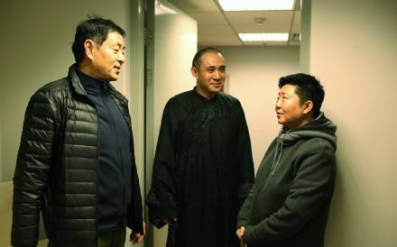 [濮存昕老师在后台与导演田沁鑫和演员贾一平]