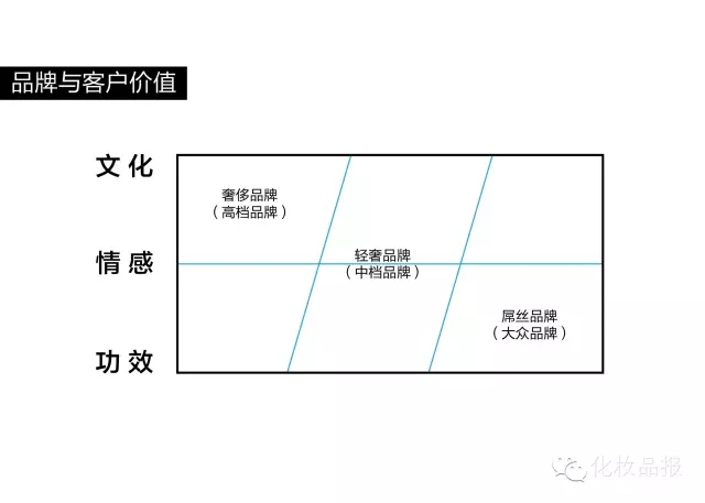 通常企业的产品或品牌具有三个功能:功效、情感、文化。从上表中可以看到从大众品牌至中档品再到高档品,它们向客户提供功效、情感和文化三个层面的价值,其程度是逐步在提升的。对任何一个产品或品牌而言功效最为基础,高档品或奢侈品给客户提供的文化价值就显得相当的重要。