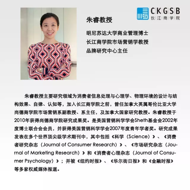 朱睿教授为长江公益课程授课教师。10月16日,她将讲授“公益的创新与实践”一课,通过多个公益案例,探索如何用商业的思维方式做公益,同时也将介绍公益众筹、社会创新等新概念,和校友一起探索创新有趣、兼具社会和商业价值的社会问题解决方案。