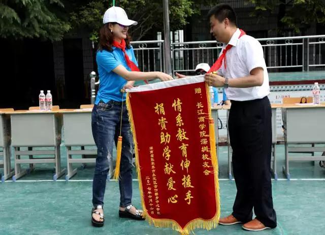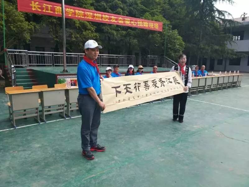 ▲ 张家界市永定区政协副主席龚志华向长江深圳校友会赠送感谢锦旗。