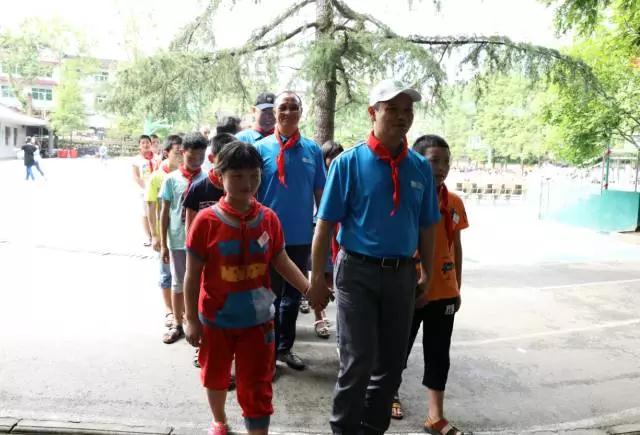 ▲ 为了表示感谢,学校安排少先队员们列队欢迎各位校友