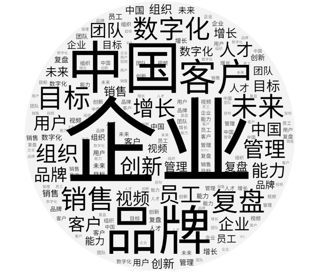 通过词云我们可以看到,“企业”“中国”“品牌”“客户”“复盘”“数字化”是本年度最佳文章讲者榜单出现的高频词汇,这些也是2021年中国新商业现象的热点。