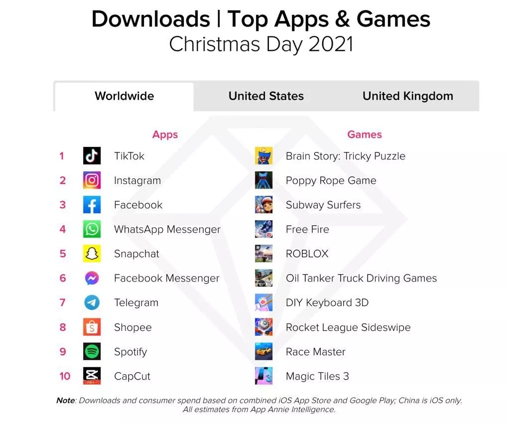 市场研究机构Apptopia的最新数据显示,2021年的购物应用下载量排名中,SHEIN已成功超越了亚马逊。