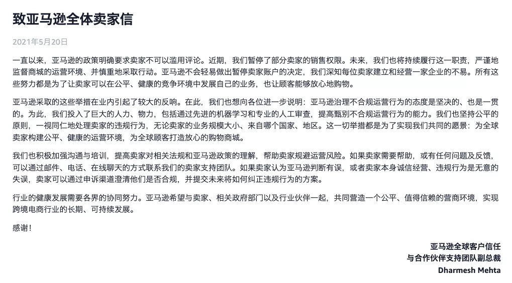 去年5月,亚马逊发出一声平地惊雷,以使用评论功能不当、向消费者索取虚假评论、通过礼品卡操纵评论等违反平台规则为由,让600余个中国跨境品牌被迫离开。半年时间,超过5万的中国卖家被平台封号,封店力度可谓空前绝后。