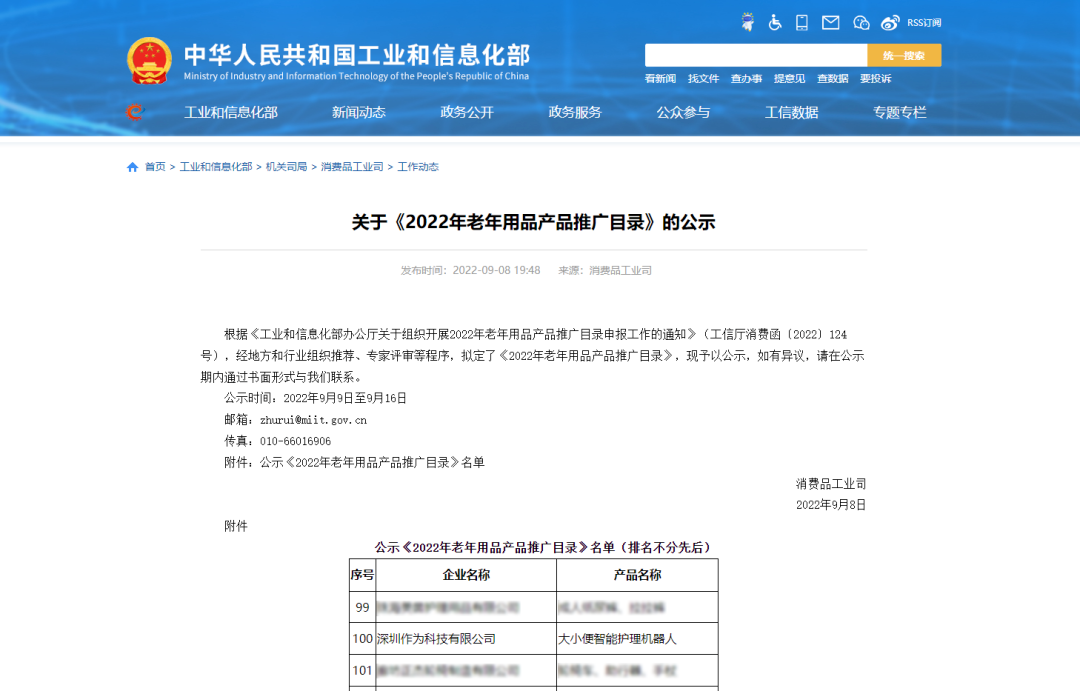 2022年9月,作为科技自主研发的大小便智能护理机器人入选工信部《2022年老年用品产品推广目录》;同年10月,大小便智能护理机器人、便携式智能洗浴机2款产品入选《上海市智慧健康养老产品及服务推广目录(2022年版)》。