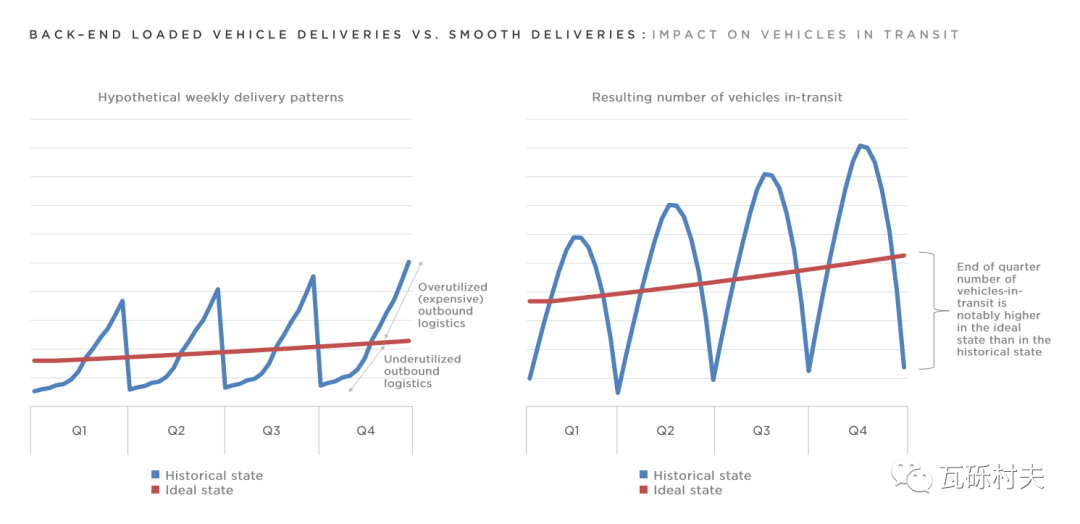 从长远来看,熨平交付曲线,允许季度末有在途的汽车运输,是有好处的。因为这样,你就不会为了急于在季度末送达所有车辆,而支付所有的加急费用。