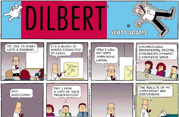 说实话,这些事情让人感觉就像生活在Dilbert漫画里一样。我说,哦不,那是什么?任何一家公司都应该自问,我们的Dilbert比率是多少?好吧,它并不是零。