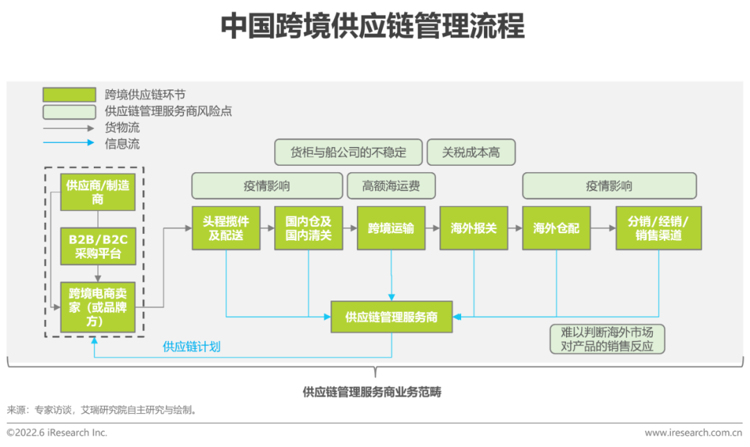 跨境供应链管理本质是从物流、资金流和信息流三方面为企业减少运营成本、增加企业营收。通过整合供应商、制造商、仓配、渠道等资源,为跨境电商企业提供相对稳定的供给和经营环境。动态变化的国际政策与信息风向,一直是跨境供应链管理服务商长期以来最大的痛点。加上近年宏观环境动荡与疫情的影响,对供应链管理服务商制定合理的供应链计划并实现履约营造了极大的不确定性。