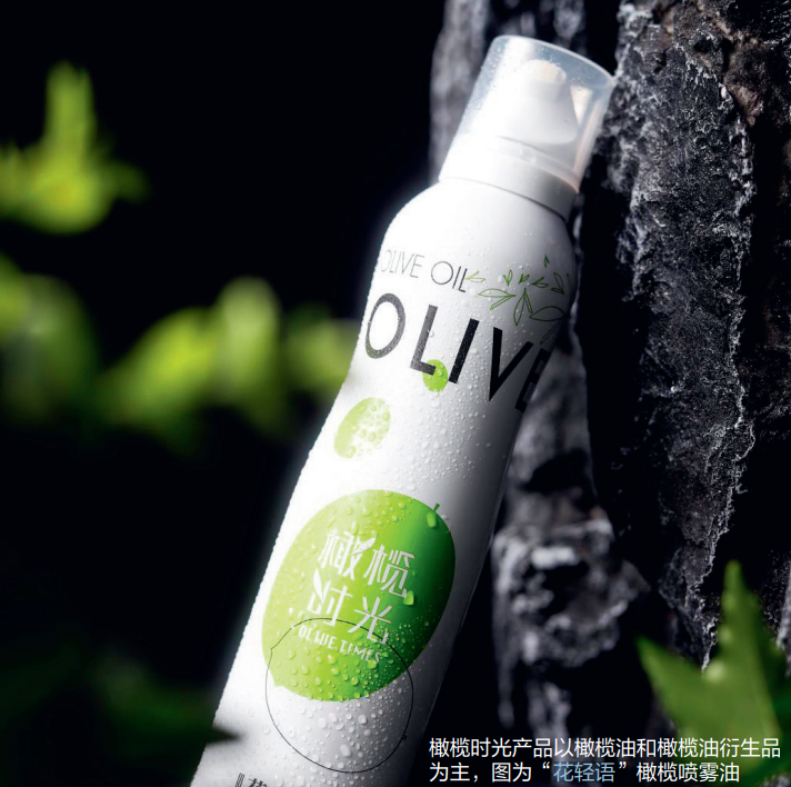 目前,橄榄时光的产品主要以橄榄油和橄榄油衍生品为主,比如橄榄油品类里包含“花轻语”(特级初榨橄榄油和特级初榨橄榄喷雾油)、“轻盈”(日常烹饪高多酚鲜橄榄油)、“头道鲜榨”(仅取9.8%第一道鲜榨果汁油)、“超U料”(鲜选66天特级初榨橄榄油)等系列;橄榄油衍生品包含瓶装的橄榄油葱油汁、橄榄油辣椒酱、橄榄油蒜蓉辣酱、橄榄油油醋汁(螺蛳风味),以及袋装的橄榄油酸汤椰椰酱、橄榄油红酒香红烧汁、橄榄油黄焖酱汁等产品。
