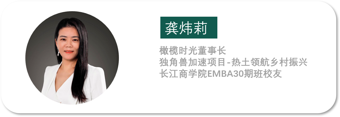 橄榄时光董事长龚炜莉是独角兽加速项目热土领航乡村振兴班同学!