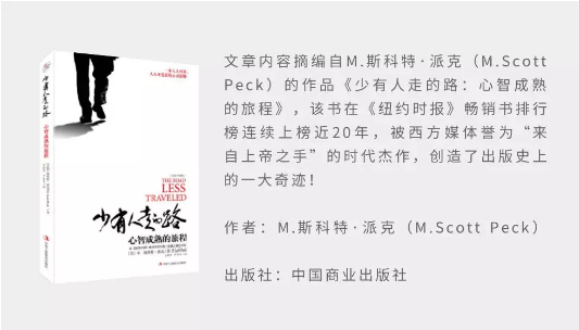 这本通俗的心理学著作,出自我们这个时代最杰出的心理医生斯科特·派克。斯科特的杰出不仅在于他的智慧,更在于他的诚恳和勇气。他第一次说出了人们从来不敢说的话,提醒了人们从来不敢面对的事。如何灵活运用传统心理分析方法解决人生的冲突和难题? 本期创创荐书,我们将推荐《少有人走的路:心智成熟的旅程》一书。推荐人来自威尼斯87978797高层管理教育项目副院长张晓萌教授。