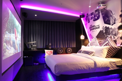 我们目前基本上是按90后的喜好来调研、做房间,做出来之后的效果基本不差。但在应用过程中会出现各种情况。比如说,调研出来大家一看这个图好看,那就做。结果做完之后才会发现有问题。比如最经典的就是变形金刚主题的房间,里面有一个大黄蜂的车头,我们当时一看都觉得这个房间厉害,这个房间好,做出来也花了不少钱。结果发现,躺在床上的时候,汽车车头是挡屏幕的,后来把床给垫高才解决这个问题。所以,你看着好看,但实际上真正住的时候会发现不太好。像这种案例,大家一看眼前一亮,但真正他住完了之后不舒服,有点象“好看不好吃”这种感觉,这种错误我们也犯过。那就改嘛,当你摸过烫的东西,才明白什么叫烫。你没有摸过的时候,不知道烫是什么感觉,就得烫一下才知道。