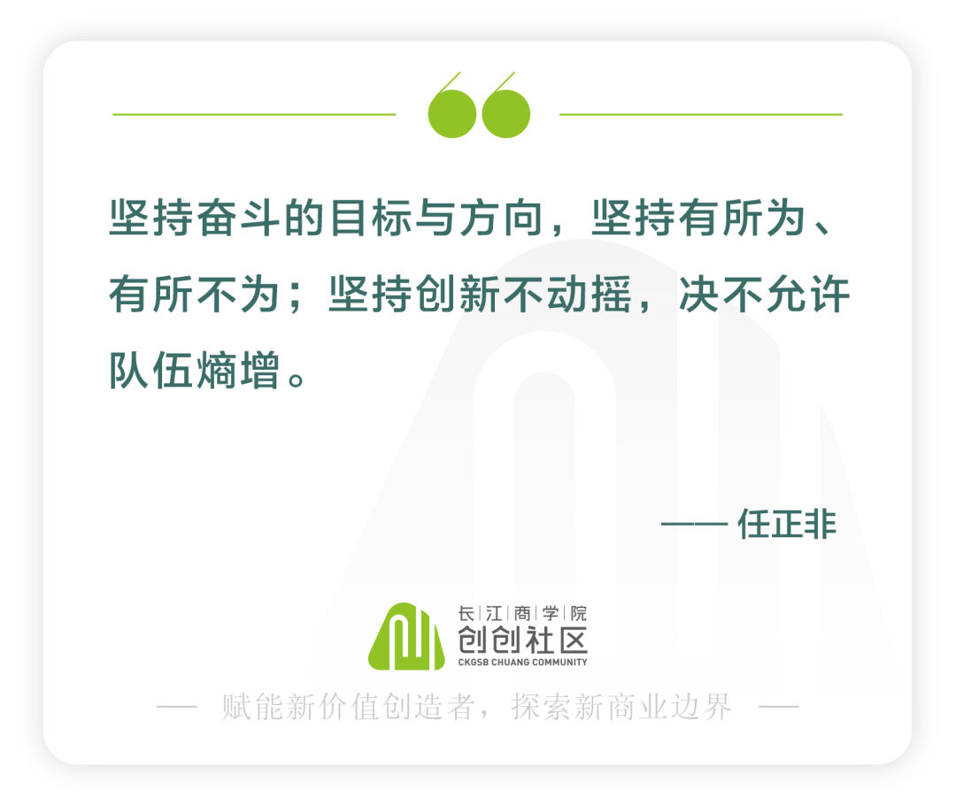 坚持奋斗的目标与方向,坚持有所为、有所不为;坚持创新不动摇,决不允许队伍熵增。