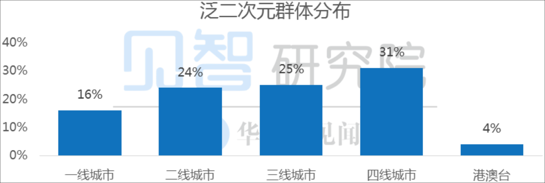 并且据三文娱数据,我国1.53亿泛二次元群体中三四线人群占比高达到56%,超过了一二线城市的占比。