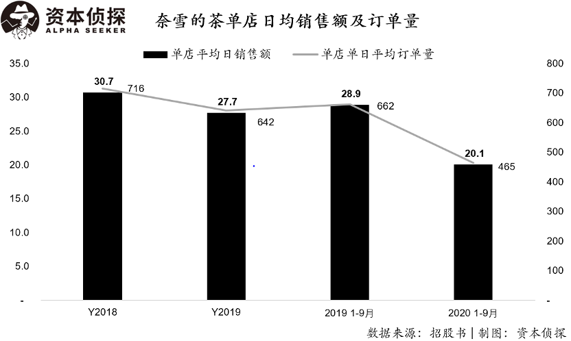 在门店数量持续增加的情况下,奈雪的茶单店日销售额以及单店日均订单量均出现持续下降趋势。