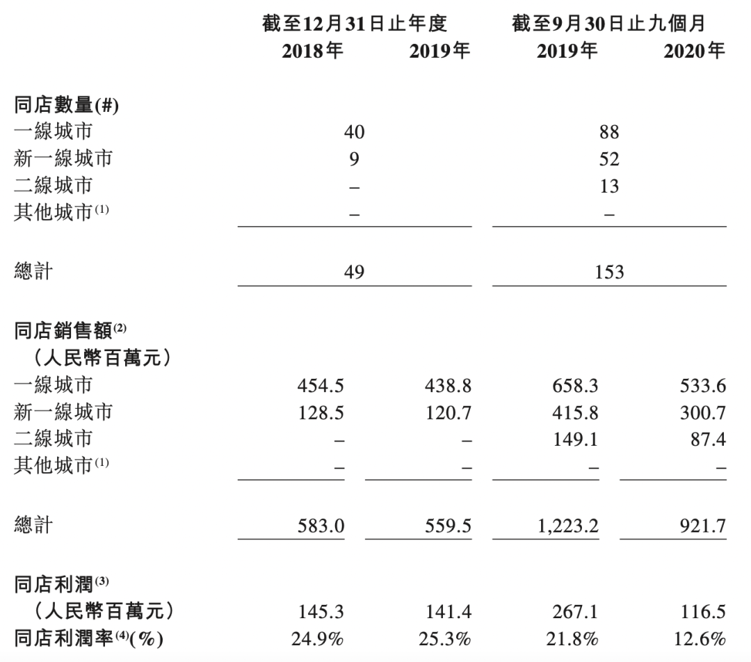 其2018年、2019年及2020年1-9月单店日均销售额分别为3.07万、2.77万和2.01万元,呈现持续下降趋势,特别是在2020年,公司平均单店销售额出现快速下降。