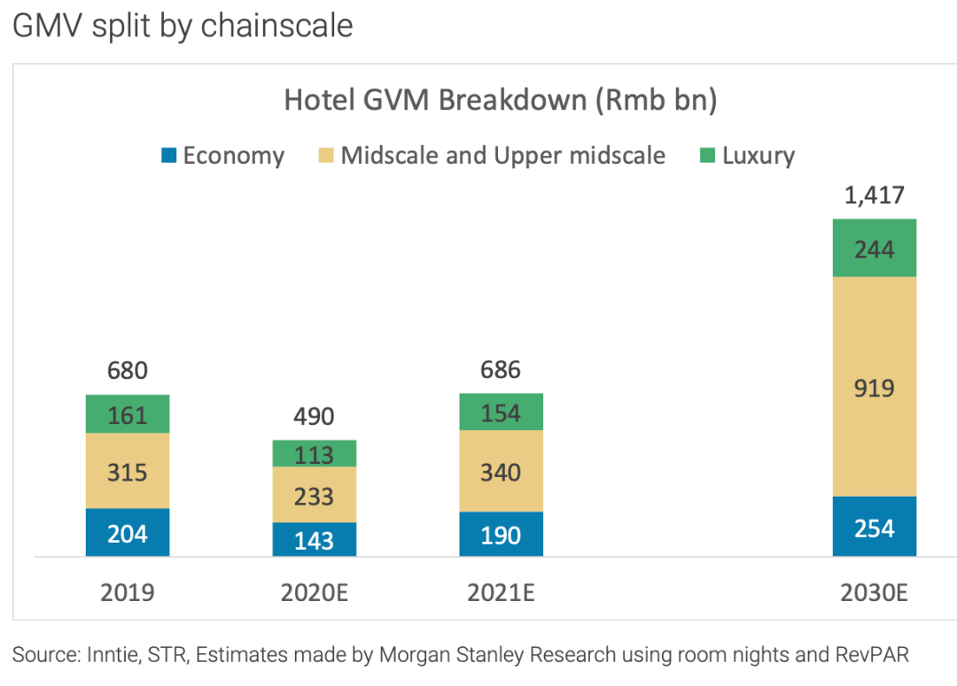 · 体验将变得比沟通更重要,到2030年,预计吃和住占境内旅游的比例将分别为24%和19%,对比19年是23%和17%。购物占旅游支出的比例将从2019年的13%降低到2030年的10%