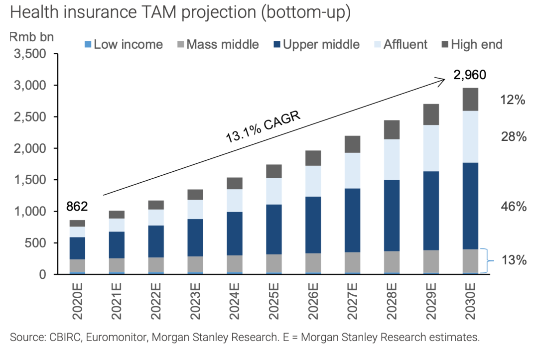 中国免税商品市场将从2019年的530亿,到2030年保持18%的年化增长,达到2280亿 #这块应该是本报告披露的,除了健康险以外,增长最快的细分市场领域