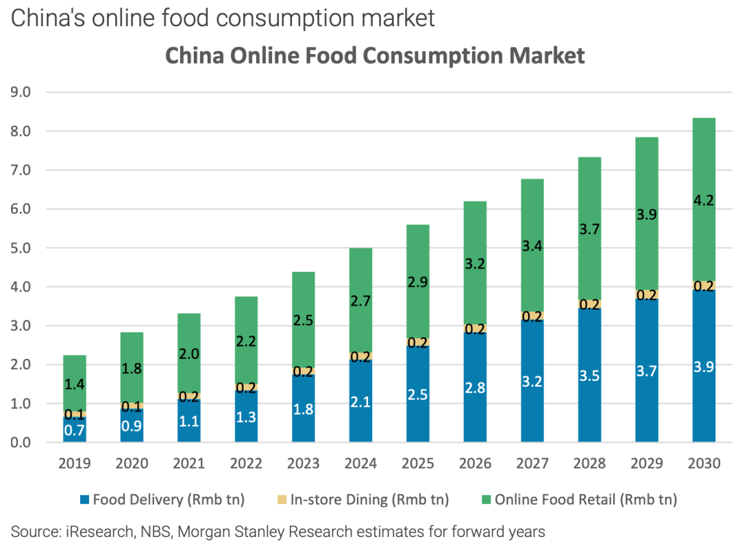 · 城市化,中国的大城市工作时间较长,没有太多时间吃饭或做饭,因此进一步催生外卖需求