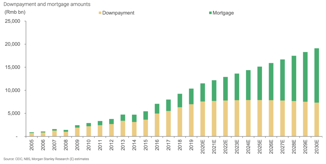 · 由于更低的首付比例以及不断增加的住房量,预计国内按揭年供款额将从2019年的61.3万亿,增加到2030年的119.5万亿