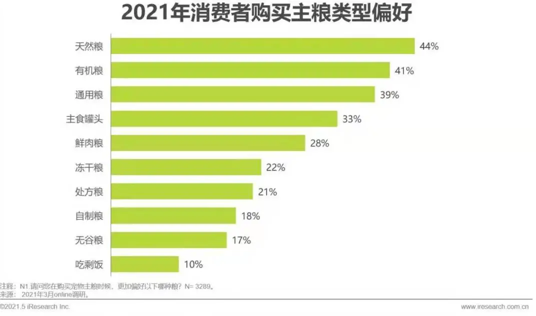 通用粮作为基础主粮排第三,主食罐头也受到青睐。