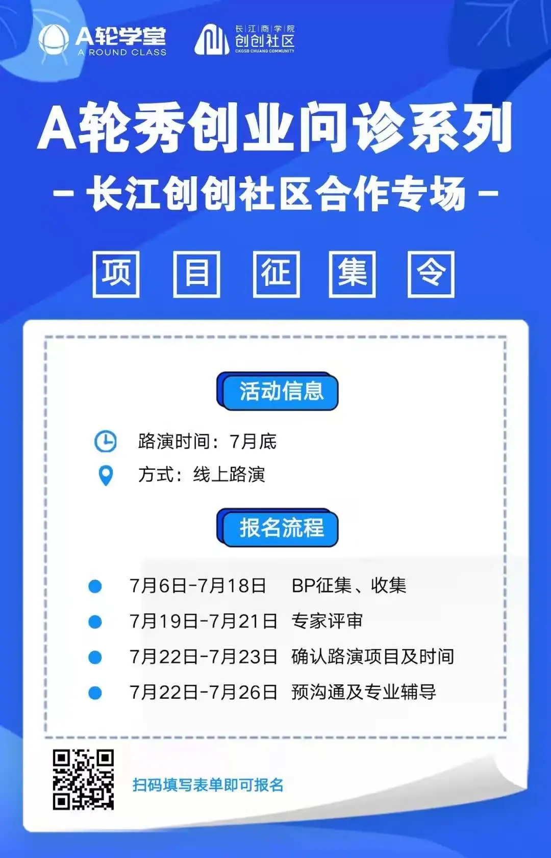 长江创创社区 × A轮学堂 专场云路演BP征集启动,等你来参加!