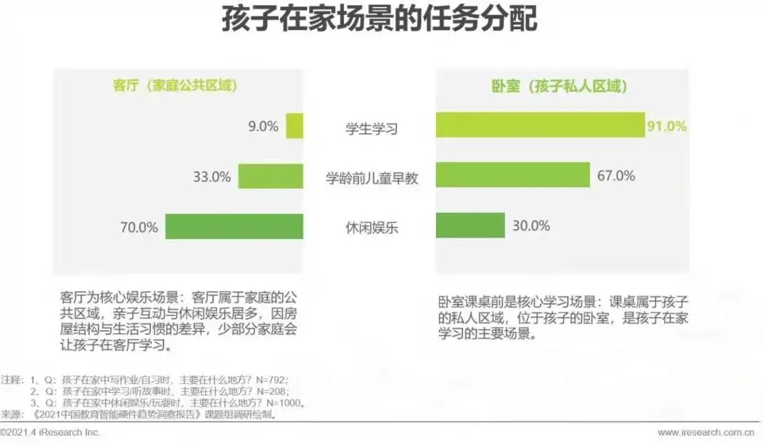 课桌是孩子核心学习场景,客厅是孩子主要的休闲娱乐场景