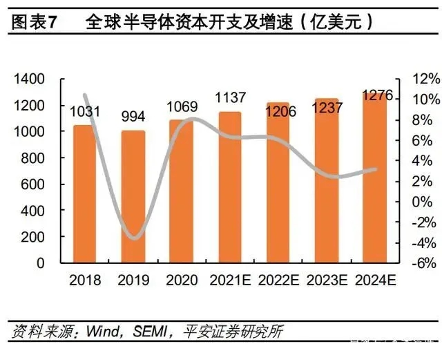 晶圆厂龙头带头扩产。2021 年 4 月,台积电将其 2021 年资本开支提高至 300 亿美金,其中 80% 投在 3nm / 5nm / 7nm 等先进制程,10% 投在先进封装,10% 投在成熟制程。台积电未来三年资本开支合计为 1000 亿美金。