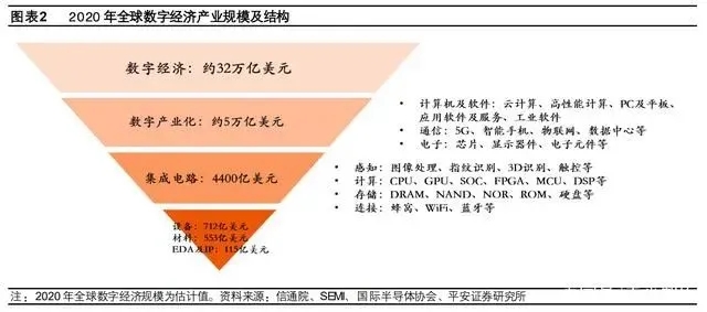 同样,半导体材料市场 2020 年的全球市场规模为 539 亿美元,主要企业销售体量相比整个数字经济体量也较小。