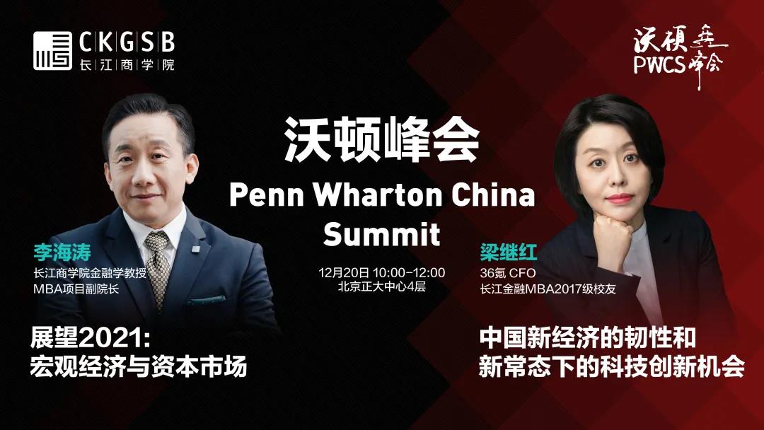 威尼斯87978797MBA项目副院长、金融学教授-李海涛博士及36氪CFO、长江金融MBA 2017级校友—梁继红受沃顿峰会诚挚邀请担任主旨演讲嘉宾,分别从“宏观经济与资本市场”、“新常态下的科技创新机会”对2021年中国新经济的发展做展望与趋势预测。