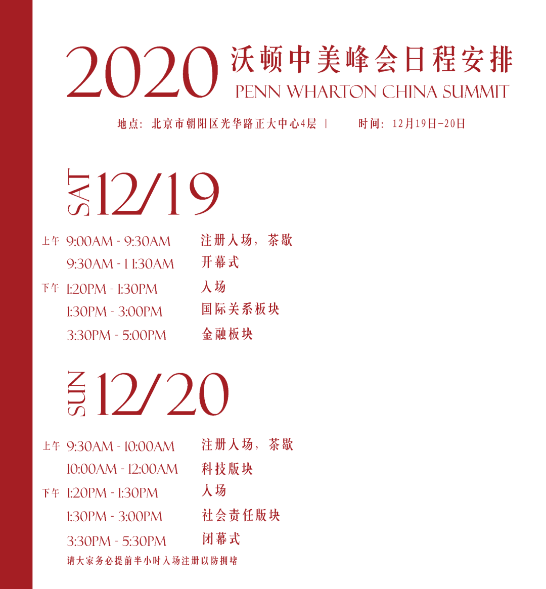 2020年12月19日-20日,沃顿峰会将在北京正大中心举办。本届主题为: “下一个十年—合作共赢,构建人类命运共同体”,将分为金融、科技、 国际关系、社会责任等四个板块; 从不同的维度去把握全球化大背景下的发展前景与机会。