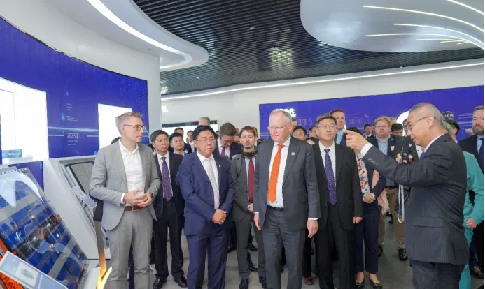 5月29日,德国下萨克森州州长施特凡·魏尔率政府、议会、企业家代表团一行70余人到访合肥,在安徽省副省长孙勇等领导陪同下,首站参访国轩高科。