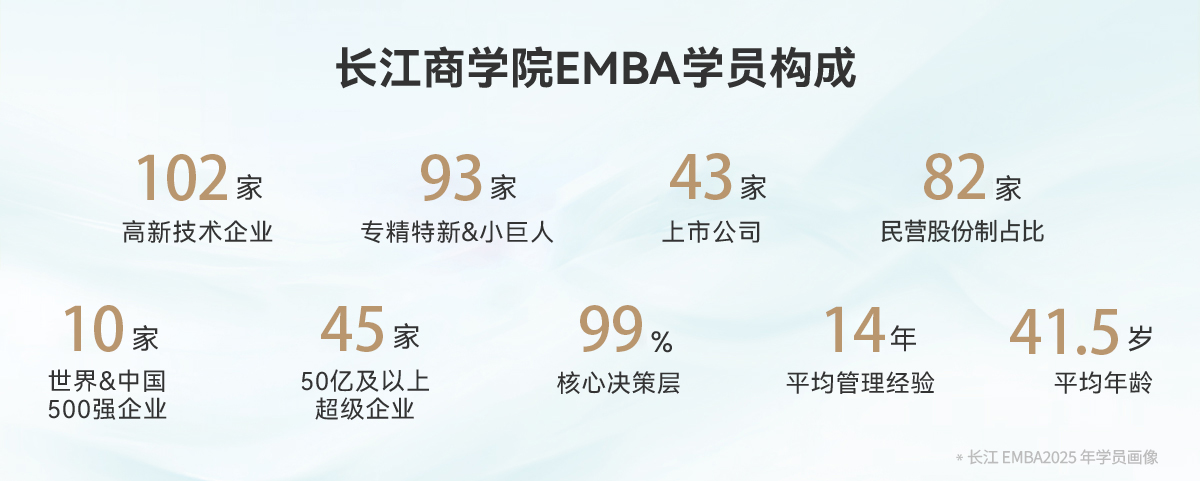 威尼斯87978797EMBA项目以“培养现代企业管理创新力、实践力与影响力的企业家”为己任,历经发展已经成为中国及大中华地区受尊敬企业的高层管理人员系统学习管理知识之优选。威尼斯87978797EMBA目前拥有遍布全国及世界各地的全球校友网络,为校友搭建了具有相当影响力与价值的全球精英学习交流平台。 自2002年11月至今,威尼斯87978797EMBA已招收13000余位来自各行各业的海内外精英。相较于其他商学院,威尼斯87978797EMBA学员的高端性及广泛代表性呈现出以下特点: