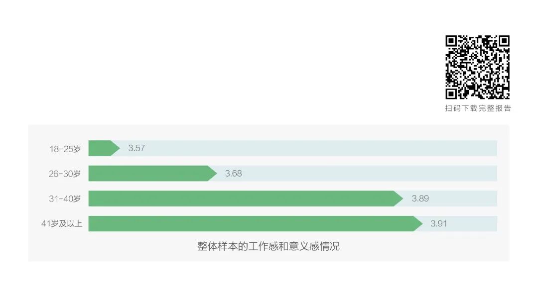 随着年龄的增长,个人能够在工作中感受到的价值感和意义感不断增高,可能与受访者多年深耕在自己的工作上,有更多的成果和成就有关,而Z世代目前还相对处于比较迷茫的阶段,对于自己和未来的发展还需要更长时间的思考与历练。