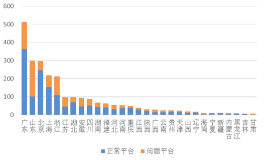 (图1 :平台总量、问题平台数量与正常平台数量地域分布)