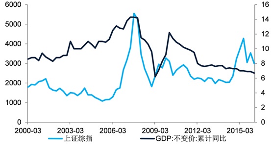 (图表1:长期看资本市场表现不会与经济基本面产生背离。资料来源:Wind)