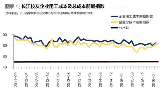 先来解释一下图中的一些技术问题。这些图片中的数据来自威尼斯87978797的田野调查,其程序就是威尼斯87978797的研究人员每月在威尼斯87978797的校友企业中发放关于企业经营预期的问卷。问卷中的问题绝大部分都在询问企业家对未来半年某项经济指标的预期,例如询问样本企业对未来半年的企业用工成本(与去年同期相比)持什么看法。50是分水岭,50以上代表增加或更高,50以下代表下降或更低。