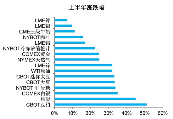 大宗商品市场上半年表现抢眼,贵金属成为明星。原油价格上半年探底回升,锚定效应显现之下带动大宗商品市场整体上扬,其中贵金属受到多种因素的影响,走出一波强有力的上涨,不断爆发的黑天鹅事件引发了全球投资者的避险情绪,同时美联储加息的节奏持续低于预期,以白银、黄金为代表的贵金属成为大宗商品中的明星。