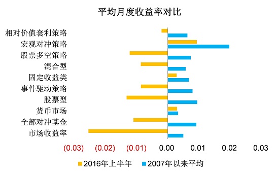 图表16:所有类型对冲基金上半年均跑输2007年以来平均水平