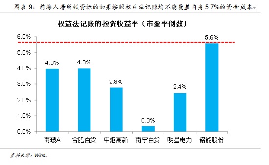 相较而言,一些中小保险公司的举牌行为提供了“反面典型”,例如前海人寿。如果按照权益法计价,即使是收益率最高的韶能股份所提供的投资收益率也不能覆盖前海人寿负债端5.7%的资金成本。而其所投资的南玻更是发生了高管集体离职的事件,据媒体报道,主要矛盾就在于前海人寿对于南玻原有员工的持股和股权激励处理不当。更加值得警惕的是,前海人寿销售的万能险产品主要是中短存续期的高现价类产品,存在明显的期限错配和潜在的流动性风险,资金来源极不稳定,这种举牌行为应当受到更严格的监管。