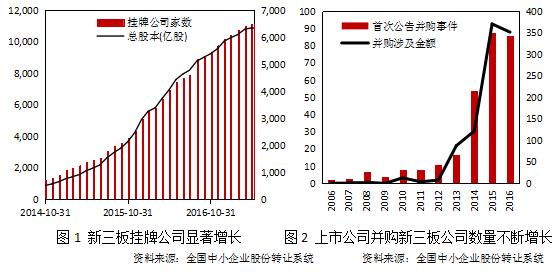 2017年2月10日,证监会主席刘士余指出,新三板既要发挥苗圃功能,又要发挥土壤功能。作为我国多层次资本市场的重要基础,新三板苗圃功能意在鼓励优质企业不断成长,为资本市场培育一批优质、高效的资产,其中新三板公司被上市公司并购是实现苗圃功能的渠道之一。我们需要思考以下几个问题:目前上市公司并购新三板公司呈现出何种发展状态?具有何种特点?上市公司与新三板公司双方的并购动因何在?本文通过上市公司并购新三板公司的具体案例分析并购成功的概率、影响因素及并购可能的前景与风险。