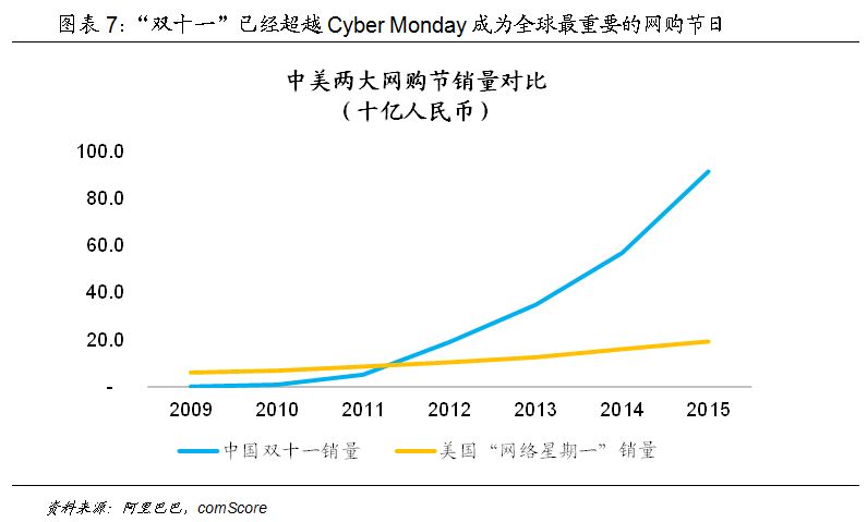 而随着新一轮城镇化进入城市的“新市民”,也将提出更高的消费要求,例如家电、汽车、娱乐、医疗保健、教育等行业,都将成为未来的需求增长点。中国大众阶层消费者的消费能力已经不容怀疑,中国电商巨头们主导的“双十一”购物节的销量已经超越美国的“网络星期一”(Cyber Monday)成为全球最重要最盛大的网购节日。由于这种新型城镇化的趋势仍将延续,因此在中国的众多经济数据表现中,消费总是体现出相比于投资数据更强的韧性。