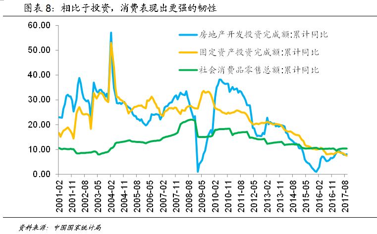 中国经济已经在2017年交出了一份令人满意的答卷,根据国家统计局最新披露的数据,虽然三季度的实际GDP同比增速小幅下滑到6.8%,但总体上看前三季度中国仍然保持了6.9%的较高速度。从9月最新的宏观经济数据看,房地产开发投资和基建投资增速都在回暖,中国经济的韧性再一次超出市场预期。而近期中国央行行长周小川在华盛顿出席G30国际银行业研讨会上更是乐观预计下半年中国有望实现7%的经济增速。