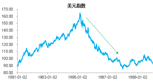 对于美国而言,在贸易战中保持弱势美元是最有利的,以上世纪80年代日美贸易战为例,贸易战过程中美元指数从1985年的最高160-170一路下挫到最低85附近。如果贸易战激化,不排除美元竞争性贬值的可能,因此建议低配美元。