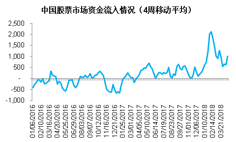我们仍然维持对中国国内权益市场的超配建议,整体上看,贸易战虽然酝酿了外部的潜在风险,但较为均衡的经济结构和较为扎实的国内需求仍然为中国经济提供了较好的支撑。从EPFR追踪的全球基金流动数据看,海外投资者同样持这一观点,在中美贸易摩擦升温后,中国股票基金持续呈现资金的净流入。