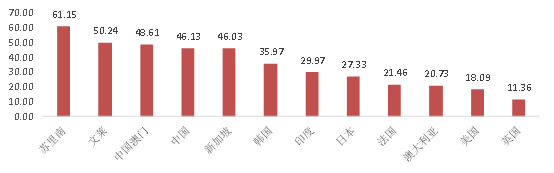 图1:2016年中国居民储蓄率与其他国家对比(%)